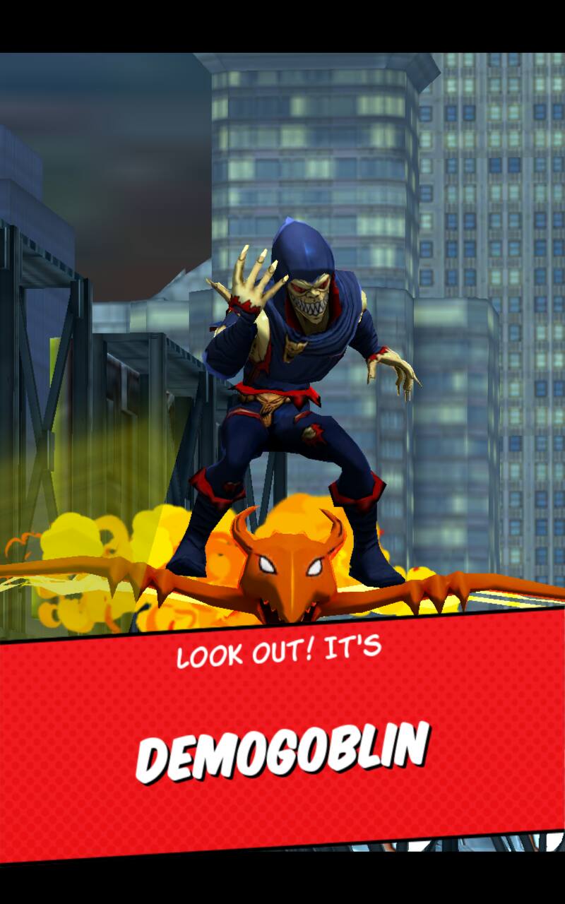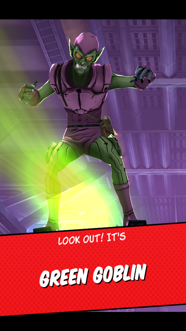 Green Goblin is the first boss encountered during the missions of Story mode. His attacks consist of Green Gas bombs/pillars/floor objects placed and thrown in front of the player throughout the battle.